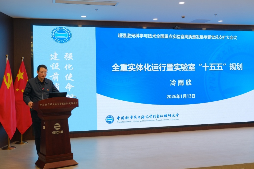 2026年1月13日上午,上海光机所召开超强激光科学与技术全国重点实验室党总支扩大会议,强化国家战略科技力量主力军使命定位,全面推进全重从实体化整合向高质量发展跨越,努力建设成为建制化基础研究和核心技术攻关的“前哨”和“高地”。所党委书记陈卫标,副所长、全重主任兼总支书记冷雨欣,纪委书记彭芳参加会议并分别作专题报告。全重行政班子、党员、副高以上科研骨干等100余人参会。会议由全重实验室党总支副书记姚金平主持。