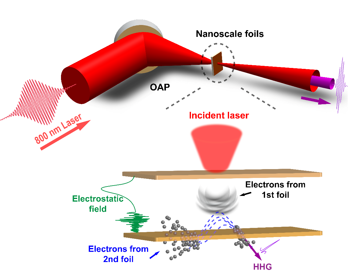 相对论激光强度下的电子动力学研究备受关注,而高强度极紫外高次谐波更是该领域的核心追求目标。极紫外高次谐波作为阿秒科学的重要支撑,在原子物理、超快动力学等领域具有广阔的应用前景,但其亮度和光子能量提升一直面临技术瓶颈。传统增强方案往往对激光对比度、脉冲持续时间等参数有严格要求,限制了其实际应用范围。
