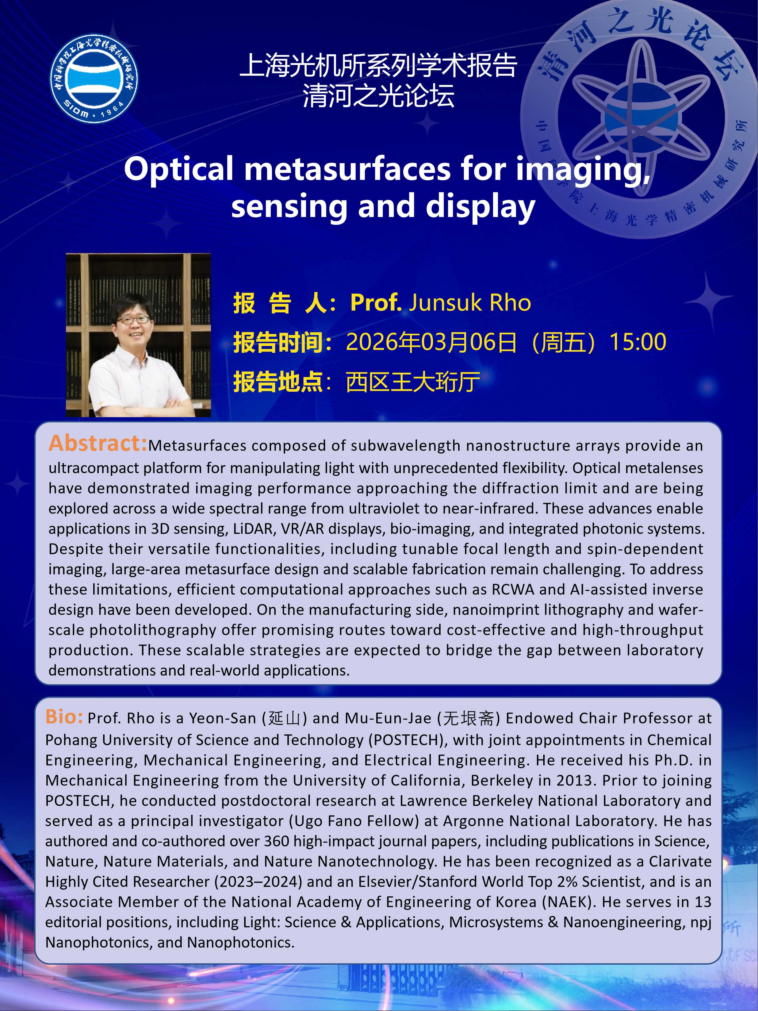 | 第一百一十二期:Optical metasurfaces for imaging, sensing and display |
